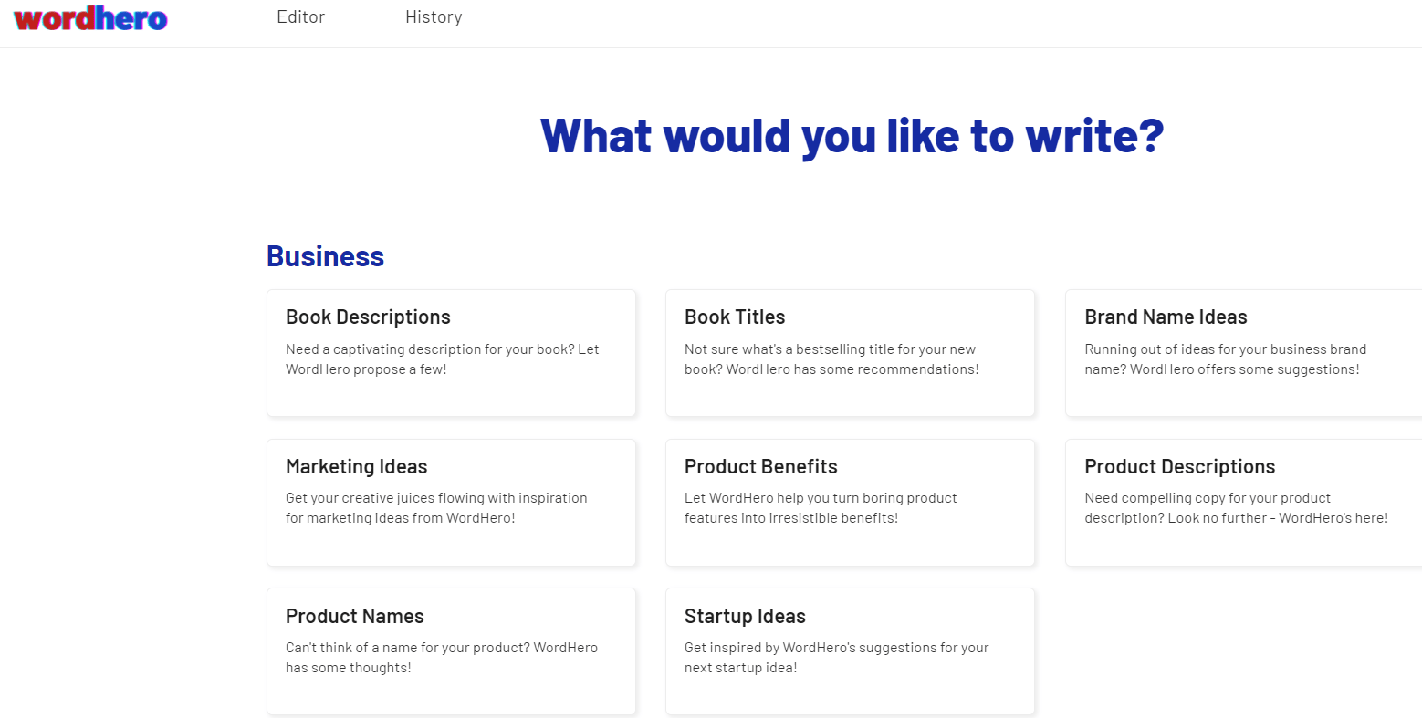 The closest competitors to WordHero are Peppertype, Nichesss and Writecream. Peppertype had some of the best content when they first appeared but it seems like very little work has been done on it since. Nichesss has improved as well with their new long-form templates. I quite like Writecream’s complete article creator and that they allow you to make your own tools. WordHero still has some of the fastest development.